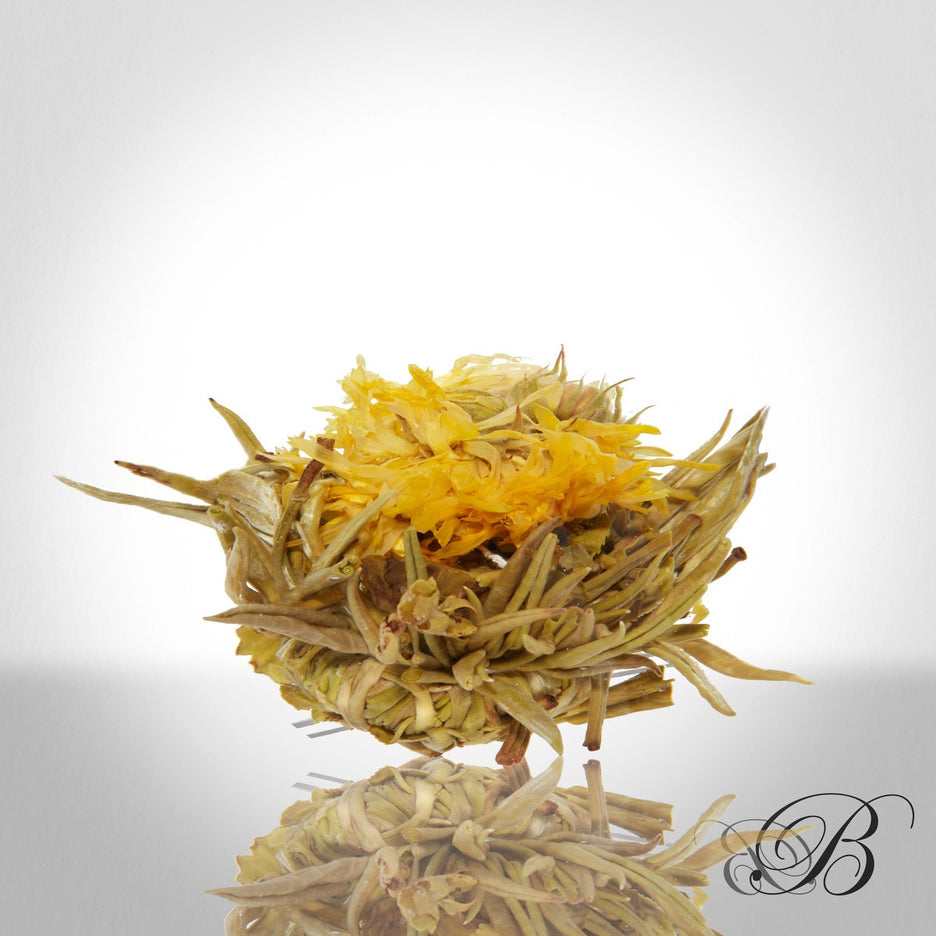 This tea flower has been hand-crafted from tea leaves and 2 calendula flowers.