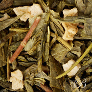 Box of green tea flavored with apple, mirabelle plum and caramel