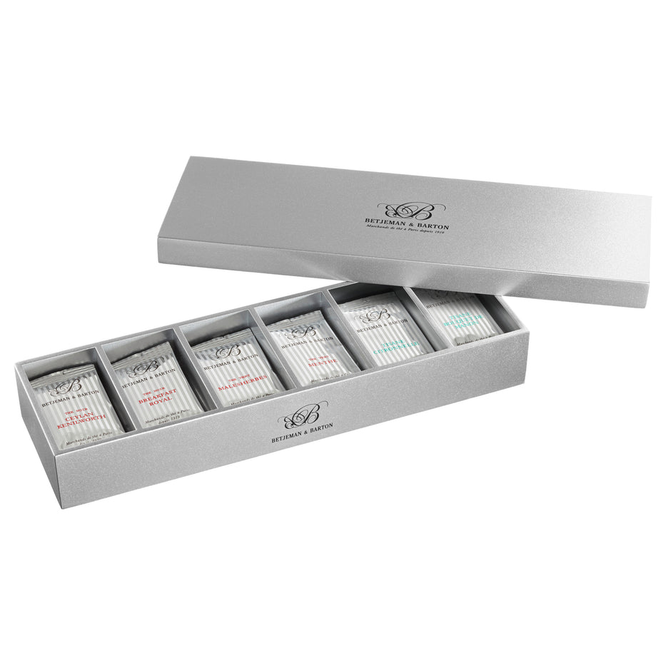 La Réglette Personnalisable 36 Sachets Betjeman & Barton est plus qu’un simple coffret : c’est un écrin élégant et modulable, qui offre la liberté de composer, renouveler et savourer ses thés favoris avec style et raffinement.