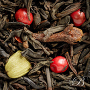 Chaï, thé noir robuste venu des hauts plateaux de Chine, est résolument intense, tant par sa belle couleur brun profond que par son attaque vive et corsée. En bouche, la cardamome verte, fraîche et camphrée, est suivie par le piquant discret du gingembre et la rondeur chaleureuse de la cannelle. Le clou de girofle ajoute une profondeur chaude et boisée, tandis que les baies roses, éclatantes et légèrement sucrées, viennent égayer l’ensemble. Cette tasse nous laisse une sensation de chaleur persistante et réconfortante, comme une étreinte qui réveille les sens et invite au voyage.